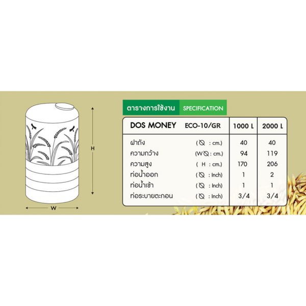 -โฉมใหม่ ถังเก็บน้ำ DOS MONEY-S ด้วยลวดลายที่งดงาม อย่างมีเอกลักษณ์ ริ้วรวงข้าวที่บ่งบอกถึงความอุดมสมบูรณ์อยู่ดีกินดี